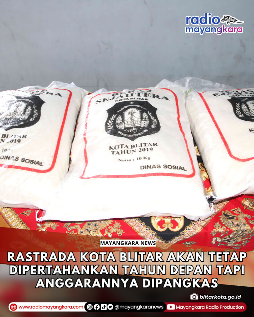 Wali Kota Blitar, Syauqul Muhibbin, mengatakan bahwa berdasarkan sejumlah masukan yang diterima, Pemerintah Kota Blitar memastikan akan mempertahankan program bantuan beras sejahtera atau Rastrada pada tahun depan. Namun, akan dilakukan rasionalisasi atau pemangkasan anggaran untuk program tersebut.